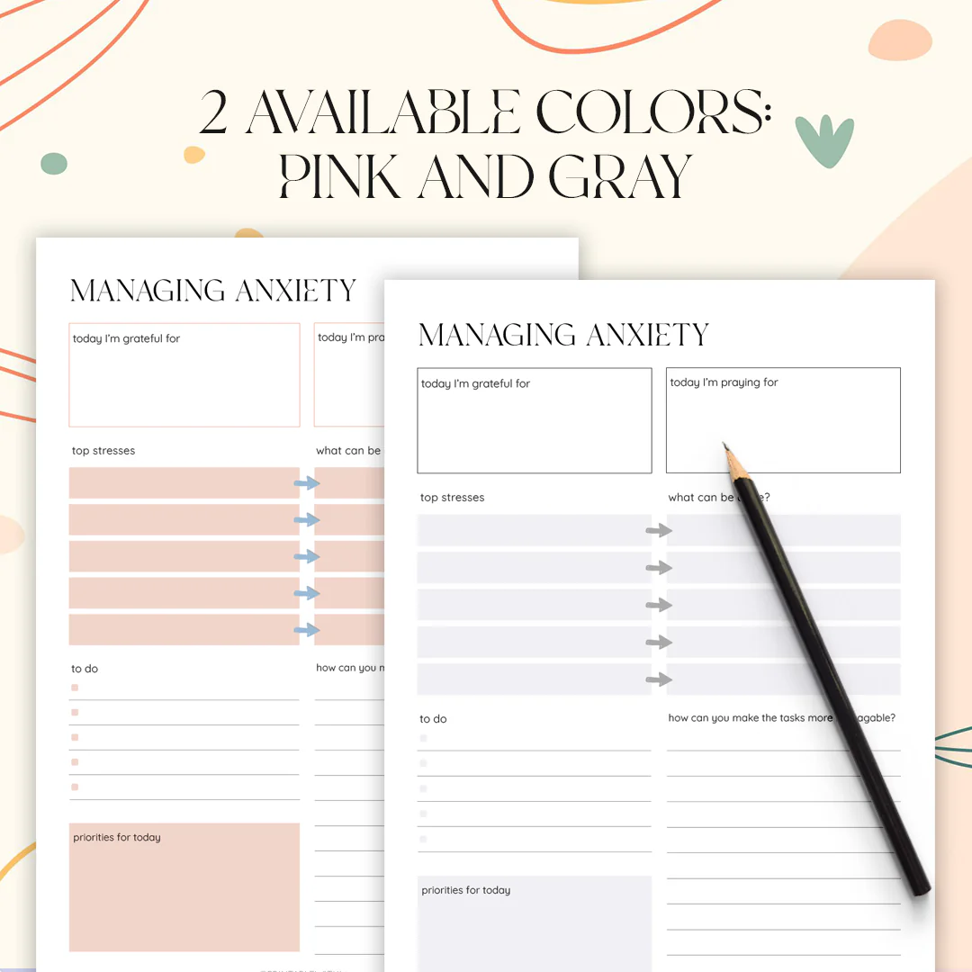 If you struggle with stress, depression, or anxiety, keeping a journal can be one of the most powerful and healing things you do for yourself. This beautifully designed printable Anxiety Journal includes 80+ guided pages to help you manage emotions, reduce stress, and practice mindfulness. Whether you're coping with overwhelm or building a self-care routine, this toolkit empowers you to reflect, regulate, and grow.